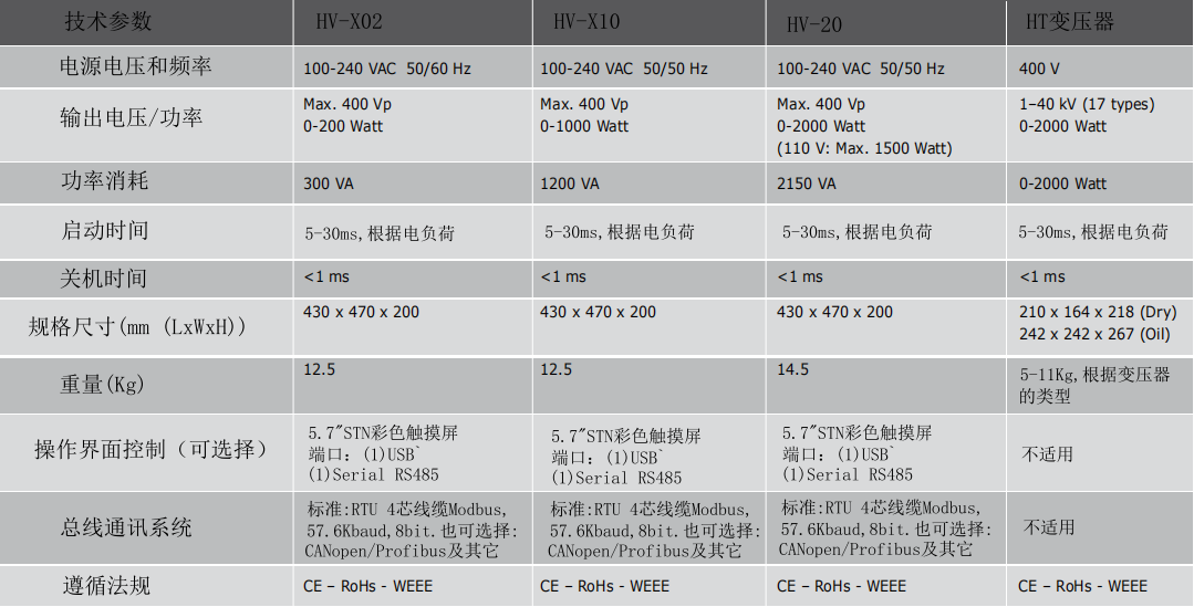 設備有HV-X02,HV-X10和HV-X20三種發(fā)生器型號。